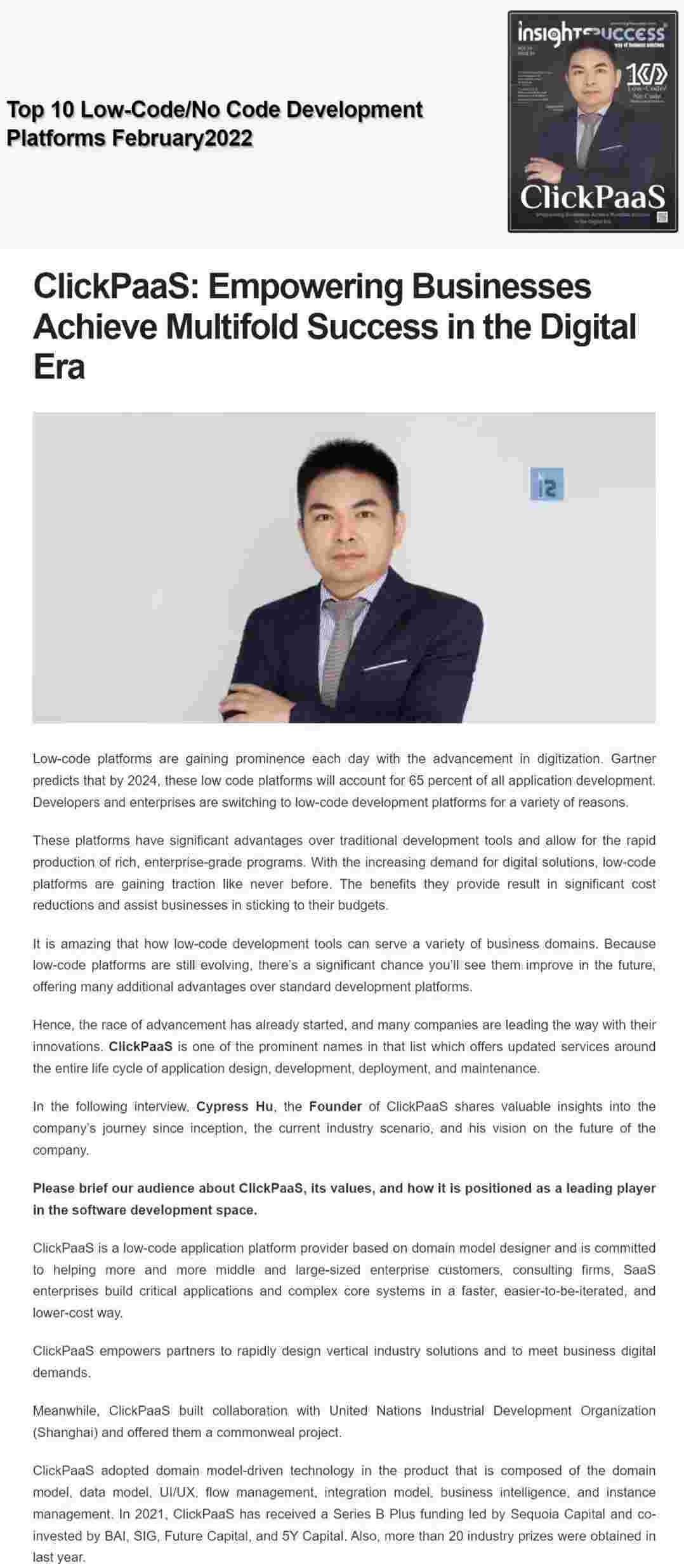 2022年年初,,,,,,,NO钱包入选外媒Insights Success低代码/无代码开发平台 Top10,,,,,,创始人、、、、、、、、、、、、、CEO胡柏受邀接受专访并荣登封面人物,,,,,,,,,,,他与Insights Success的读者分享了NO钱包成立的初心、、、、、、、、、、发展历程、、、、、当前的行业发展趋势以及他对公司未来的展望。。。。。。。